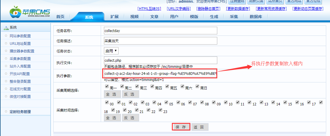 如意的下载资源添加采集【保存】按钮即可,具体操作如下图